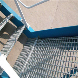 網格踏步板是由網格柵加工而成的(網格柵是用扁鋼按照一定的間距和橫桿進行交叉排列,并且焊接成中間帶有方形格子的一種鋼鐵制品)。該產品表面一般用熱鍍鋅、電鍍鋅處理。